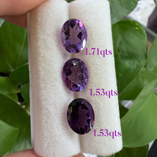 Anillo Amatista Corte Esmeralda 1.49qts con Zafiros Rosas Laterales 0.34qts y Diamantes 0.06qts