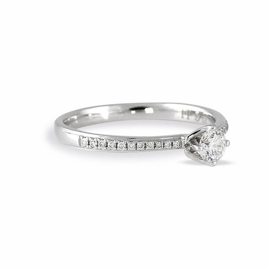 Anillo de Compromiso con Diamantes Laterales 0.28qts