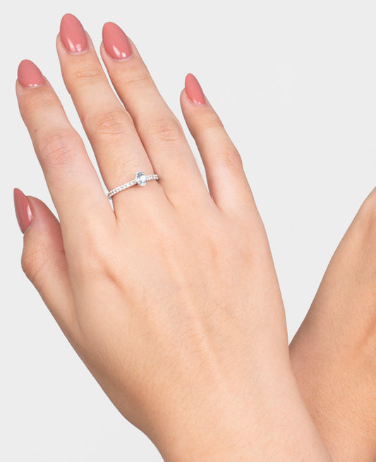 Anillo con Aguamarina Natural y Diamantes Laterales