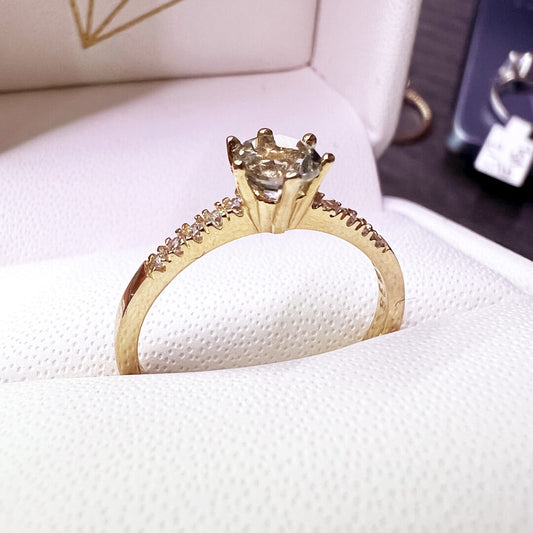 Anillo con Amatista 6mm y Diamantes Laterales 0.02qts