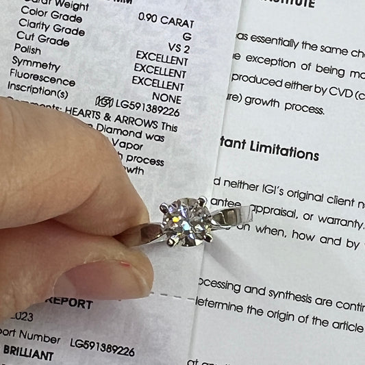 Solitario Diamante de Laboratorio Corte Redondo 0.90qts