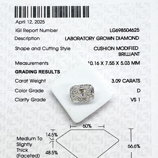 Diamante de Laboratorio Corte Cushion 3.09qts
