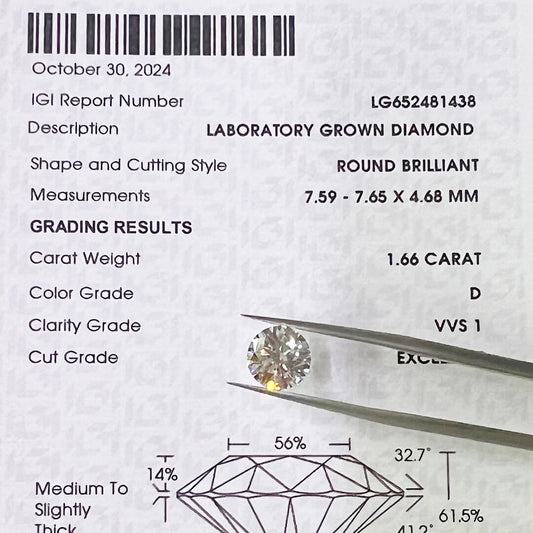 Diamante de Laboratorio Corte Redondo 1.66qts