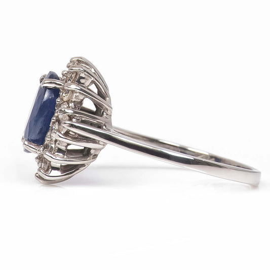 Anillo con Zafiro "Mermaid" Sirena Oval con Diamantes Naturales Laterales