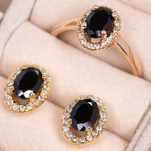 Aretes halo "black spinel" y diamantes naturales