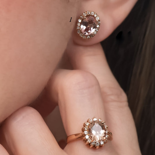 Aretes con Morganita y Halo de Diamantes Naturales 0.36qts