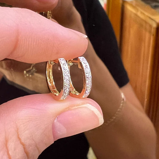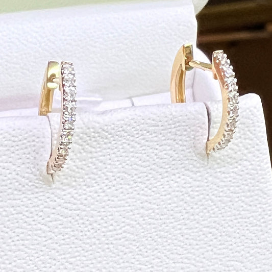 Aretes Huggies Chicos Oro Amarillo con Diamantes 0.10qts