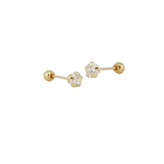 Corazón con Bisel Liso y CZ 5mm Broquel Aretes para Niñas