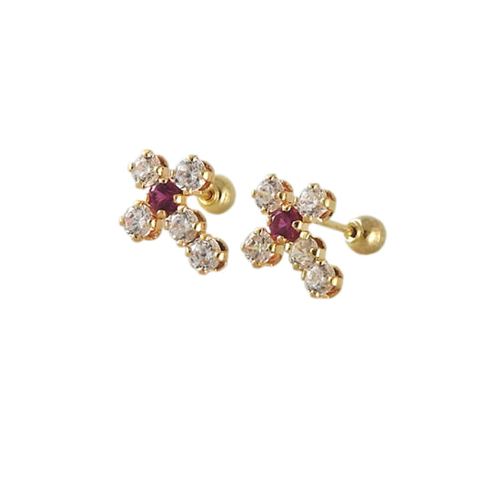 Aretes con Diamante Natural de Florecita Oro Amarillo 14k