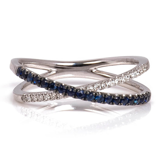 • Churumbela Doble Oro Blanco con Diamantes Naturales y Zafiros Rainbow Naturales