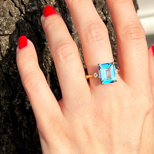 Anillo Topacio Swiss Blue 14k