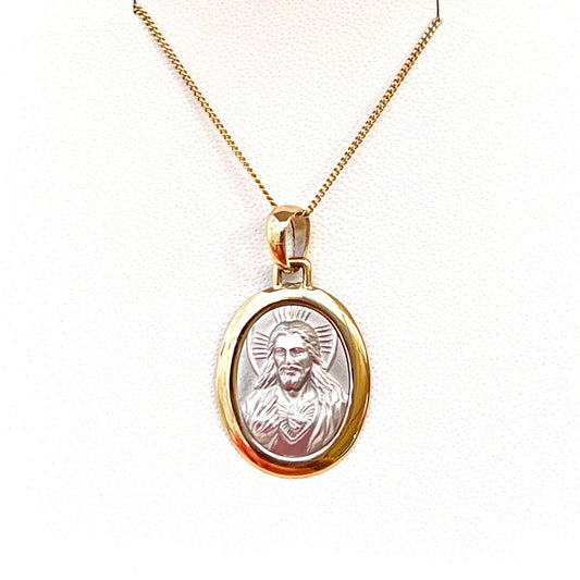 Medalla Sagrado Corazón 14k Dos Tonos 20mm