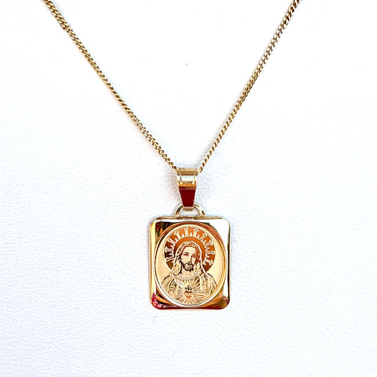 Medalla Cuadrada Sagrado Corazón de Jesús 14k 15mm