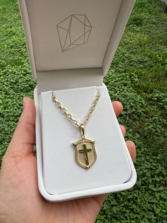 AgotadoEscudo con Cruz de 14k