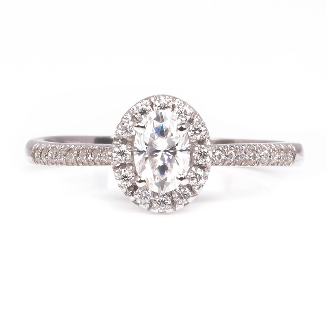 Anillo de Compromiso con Moissanita Corte Oval con Halo 0.50qts 4x6mm