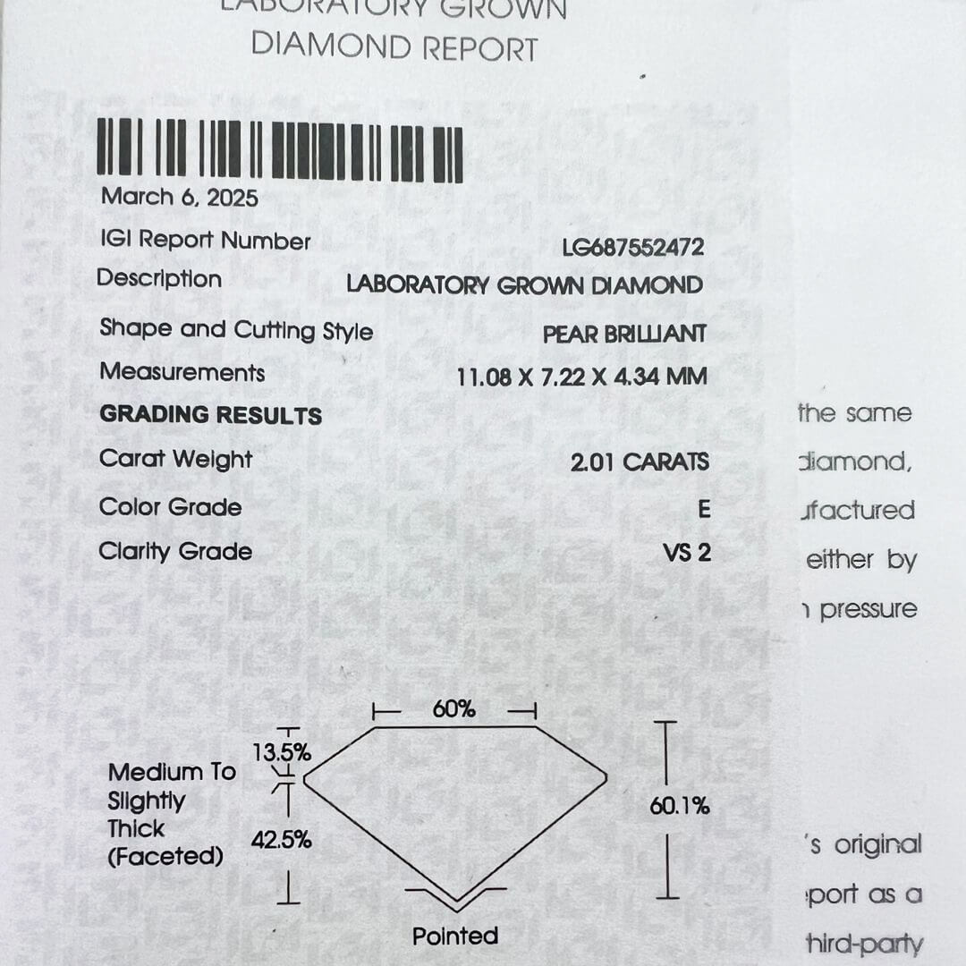 Anillo de Compromiso Labgrown Corte Pera 2.01qts