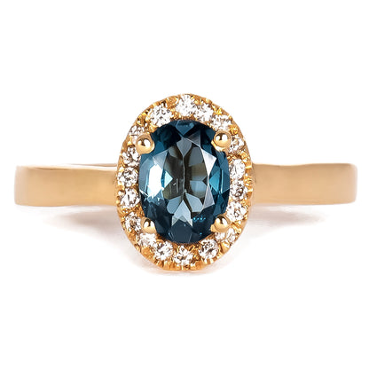 Hermoso diseño de Topacio natural con Halo de diamante y brazo liso.