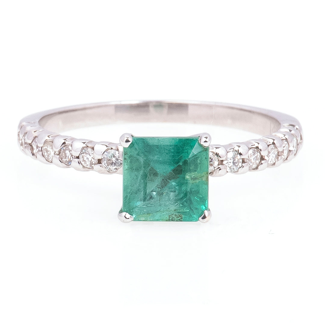 Anillo Alea con esmeralda cuadrada y diamantes laterales