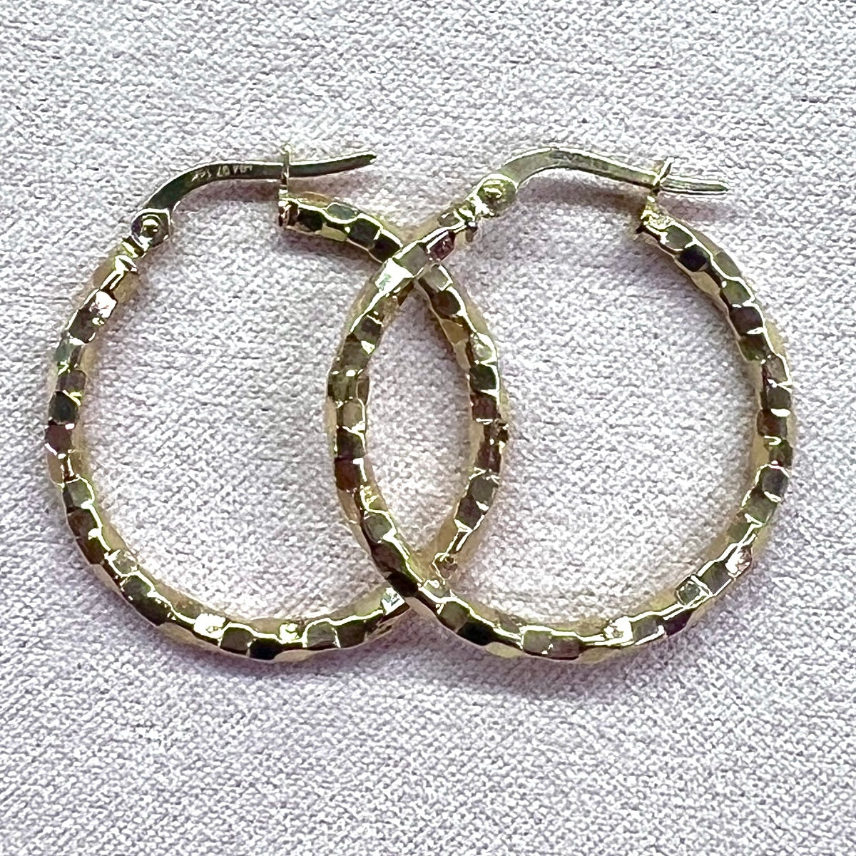 Luce esta preciosa arracada facetada, hecha de oro de 14k diamantado. Esta joya crea una luz espectacular, su tamaño ideal hace de ella una joya cómoda para usar diariamente. Muestra tu estilo único con esta arracada.
