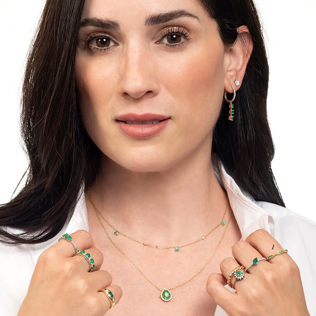 Descubre la elegancia única de nuestra churumbela con esmeraldas en oro de 14 quilates.