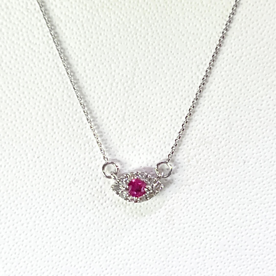 Collar con Dije de Ojito con Rubí Nat. 0.03qts y Diamantes Naturales 0.07qts