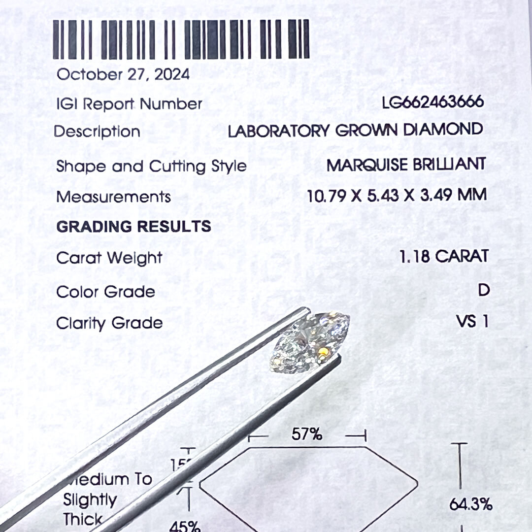 Diamante de Laboratorio Corte Marquise 1.18qts