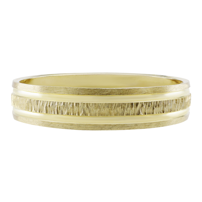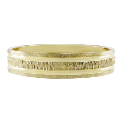 Argollas amarillo 10k con centro cepillado y bisel pulido