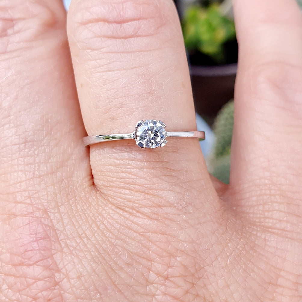 Anillo tipo solitario. Diseño moderno y diferente. Hermoso diseño con brazos cruzados y boquilla de 3 uñas.