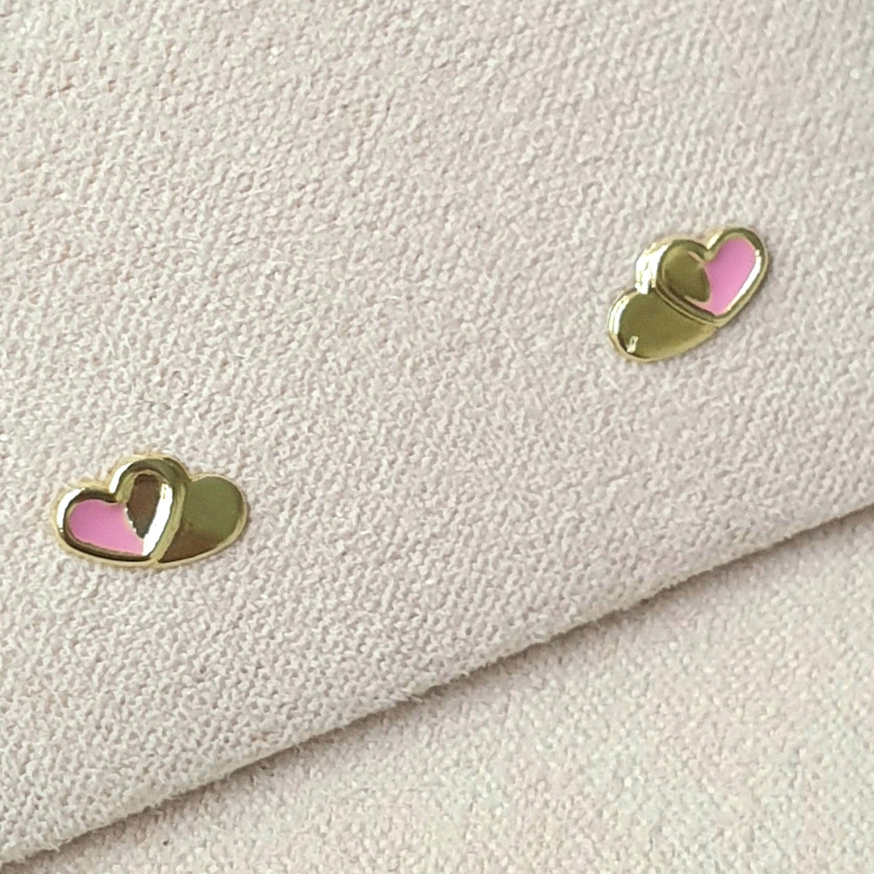 Diseño lindo de dos corazones, uno con esmalte rosa.