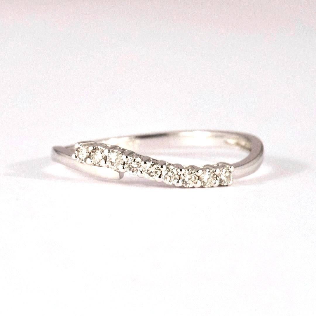Anillo tipo churumbela con un diseño diferente. Hermosa hilera de diamantes con una forma curveada diferente a los tradicionales.