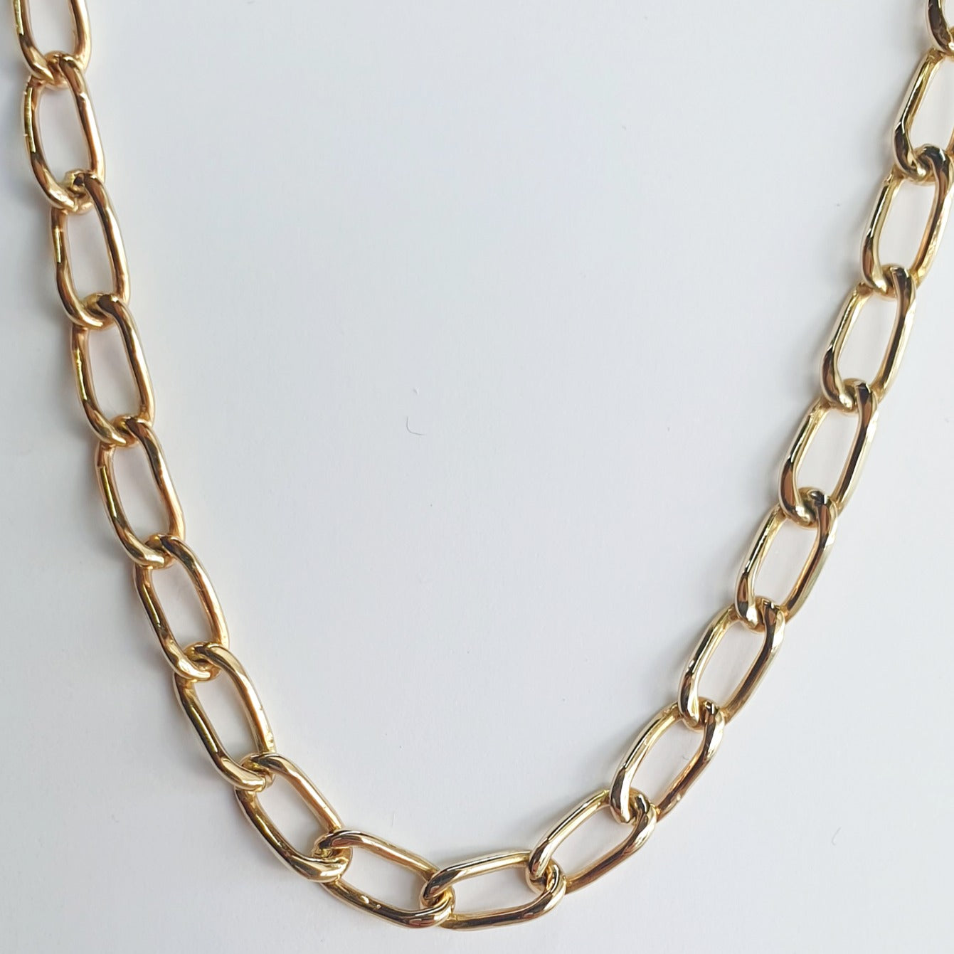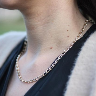 Cadena 1x0, eslabón seguidoCadena ideal para usarse de varias formas, como gargantilla o como "statement" con un dije.