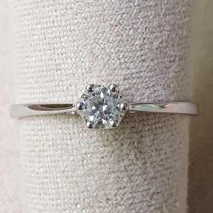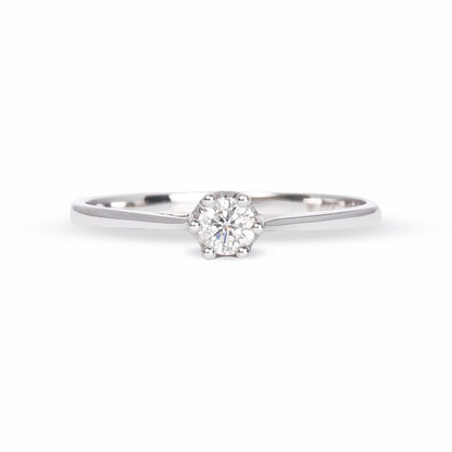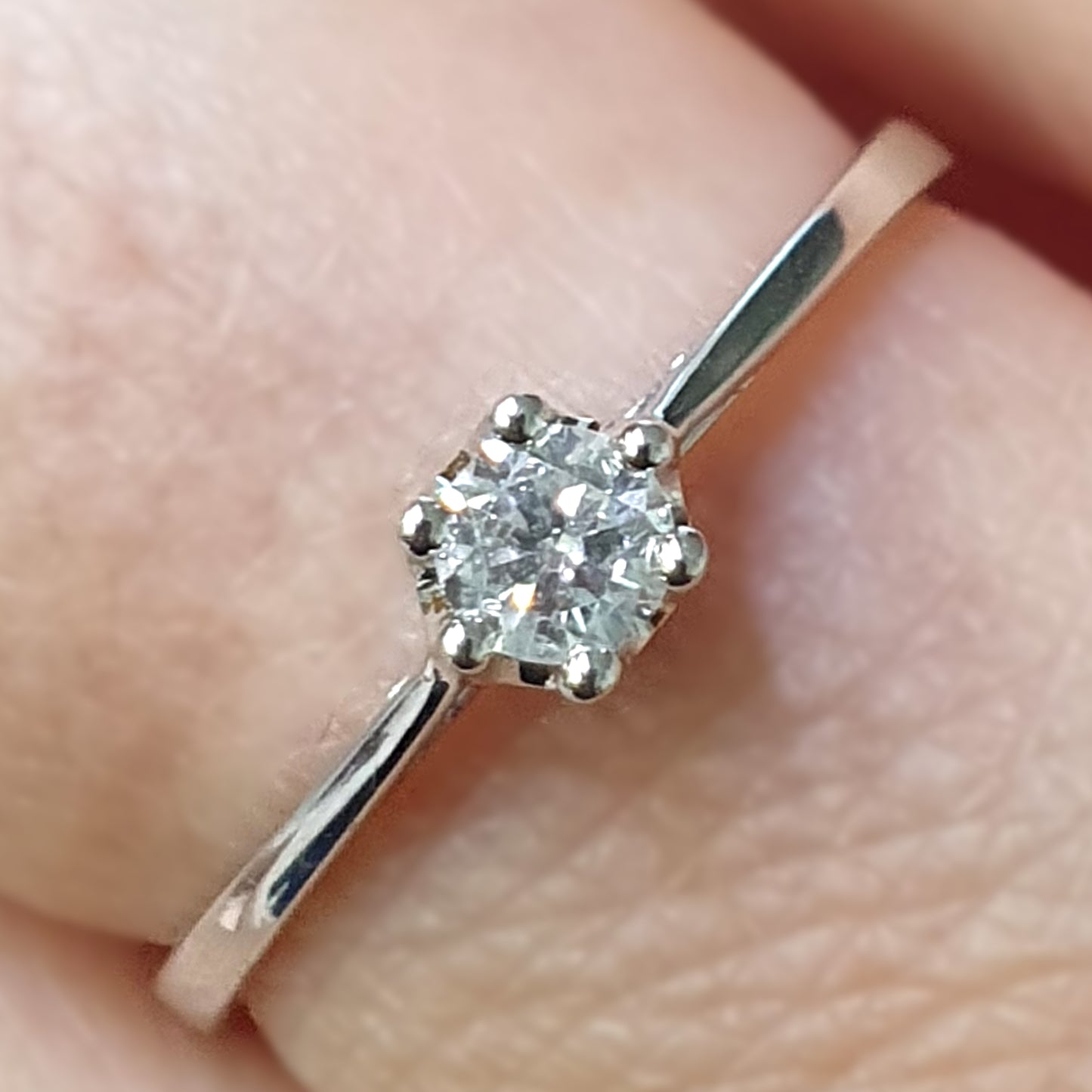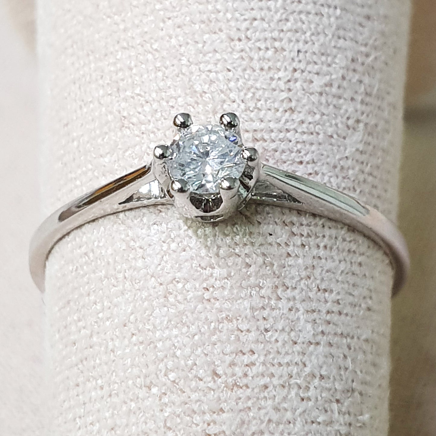 Anillo tipo solitario. Diseño con brazo exquisito y una boquilla con forma de coronita que lo hace diferente a todos los demás. Muy bien asegurado con 6 uñas.