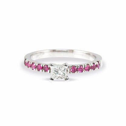 Anillo de Compromiso Princess Cut .30qts Zafiro Rosa Lateral 0.25qts