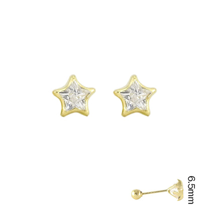 Estrella con Bisel Circonia Broquel Arete de Niña 14k