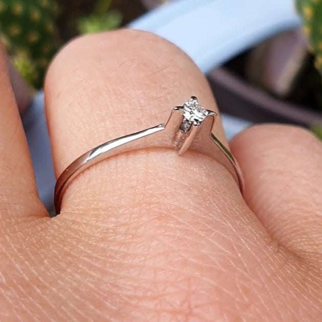 Anillo tipo solitario. Diseño de boquilla tipo crucita.