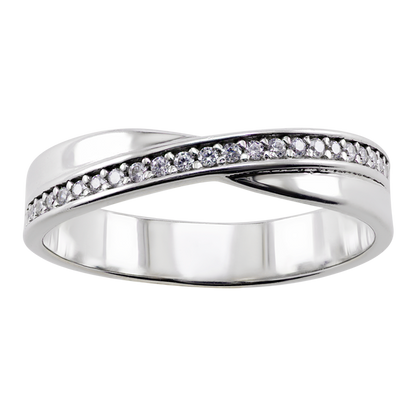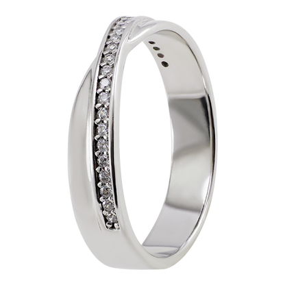 Argollas blanco 14k con diseño. tipo cruzado con circonias.